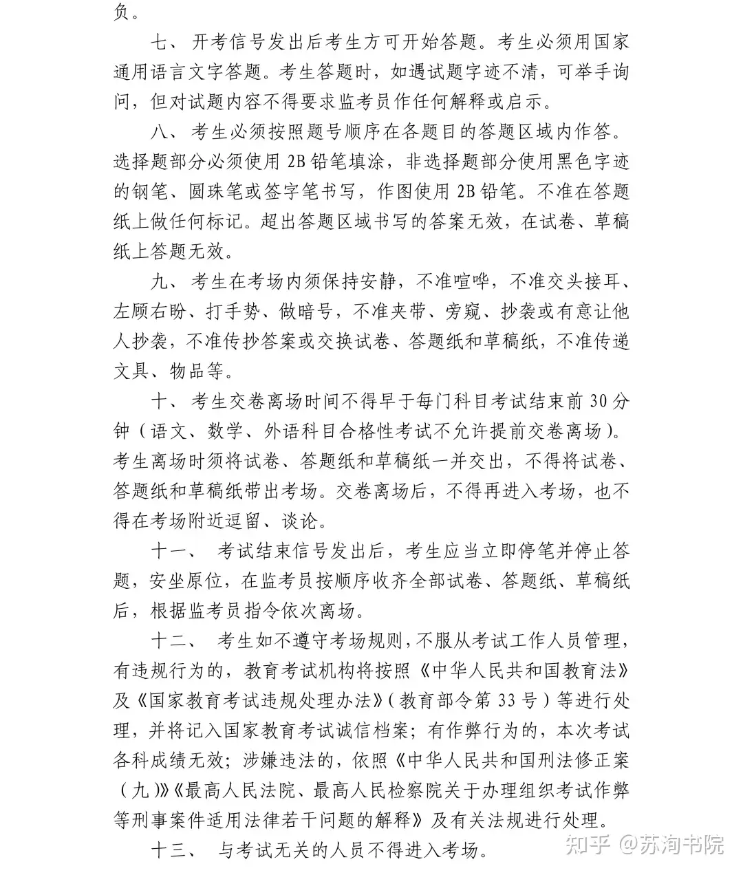 5.开考信号发出后,考生方可开始答题;考试结束信号发出后,应当立即停笔并停止答题。考试结束信号发出后继续答题的将按照考试违规进行处理。
